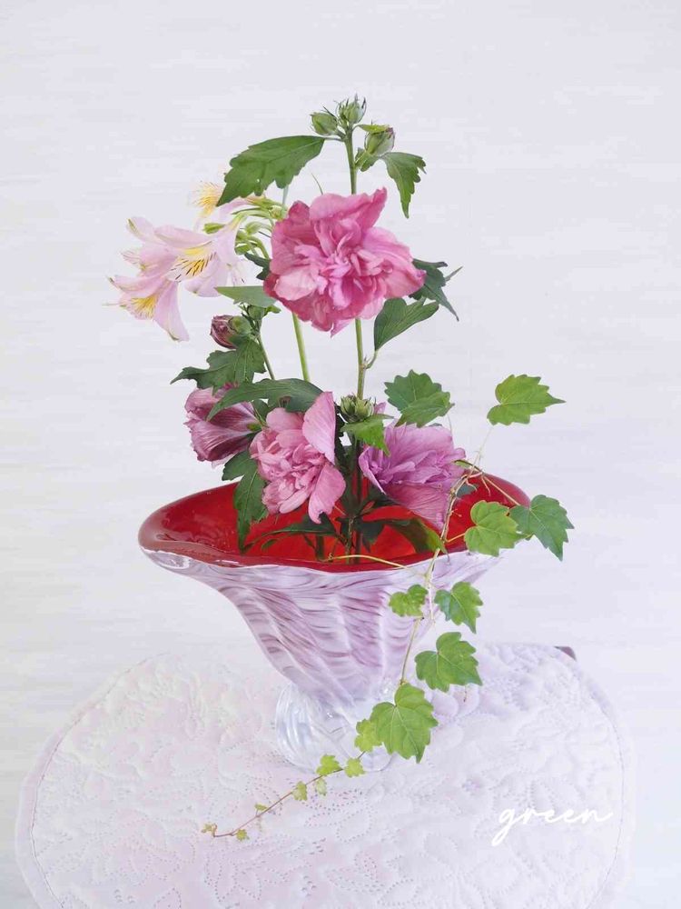八重咲きのムクゲ可愛いね〜greenさんのアレンジ素敵だわ(人´∀`)🌺