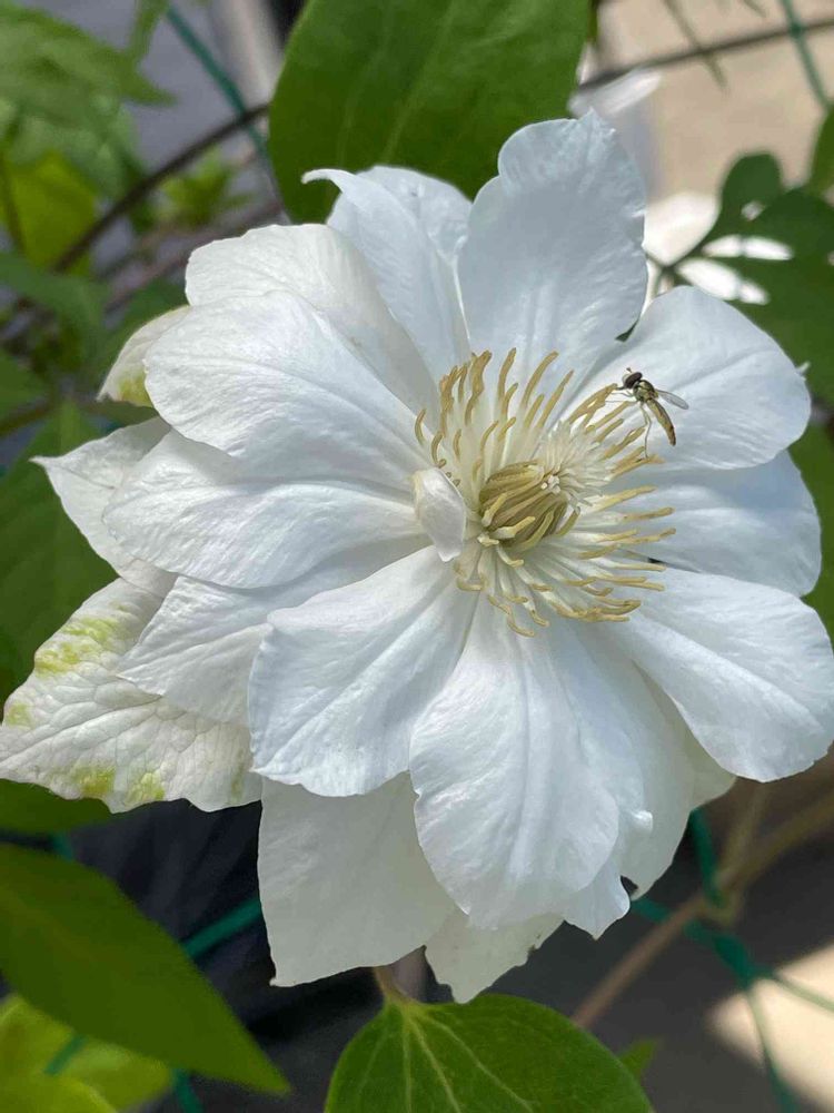 クレマチス ダッチェス・オブ・エジンバラ,オオヒメヒラタアブ,昆虫大好き♡の投稿画像