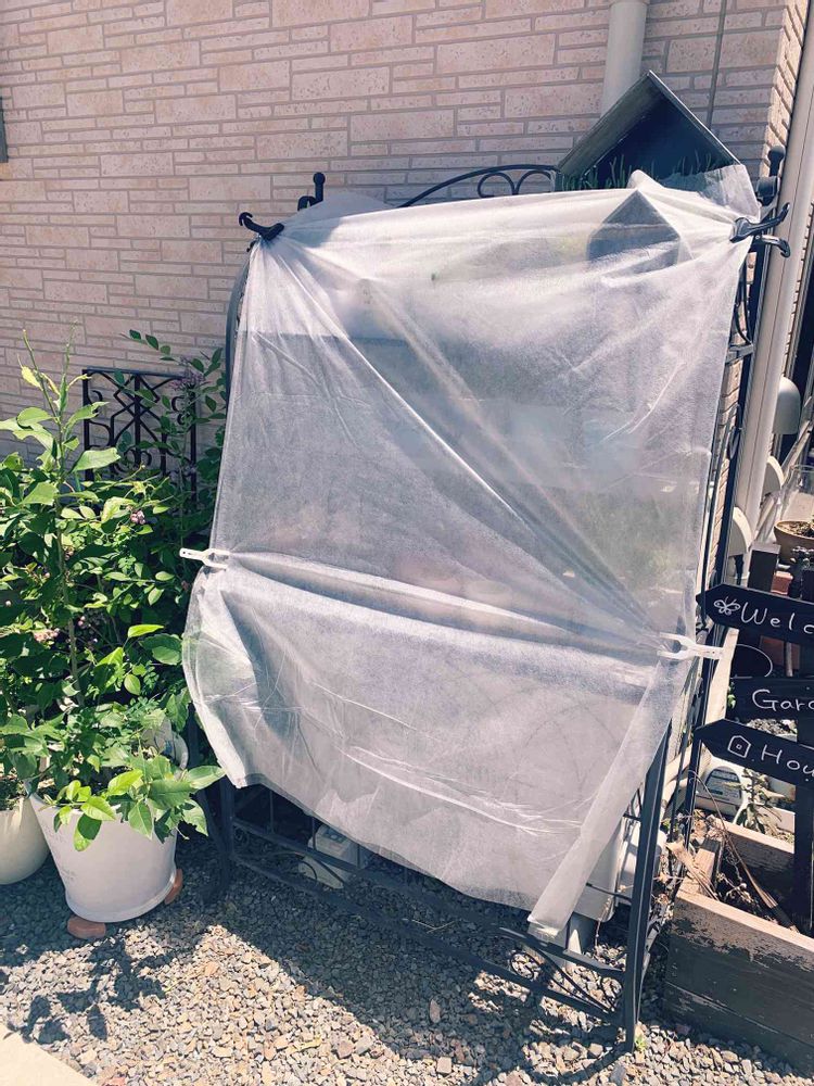 今まで「ついてこれないヤツはついてこなくていい」という俺様な育て方で日除けはしてませんでしたが、流石にお高い大事なものも増えてきてビビり始めたので、見た目は悪いけど不織布で日除けを作りました。