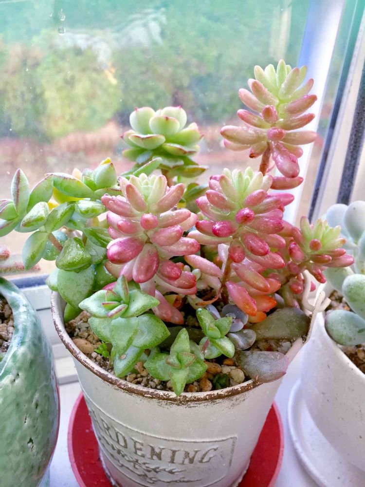 先っちょだけ赤くなるのもあったり🤭⁉️多肉ちゃんはもう〜解りません⁉️パニクりまくります(≧∀≦)