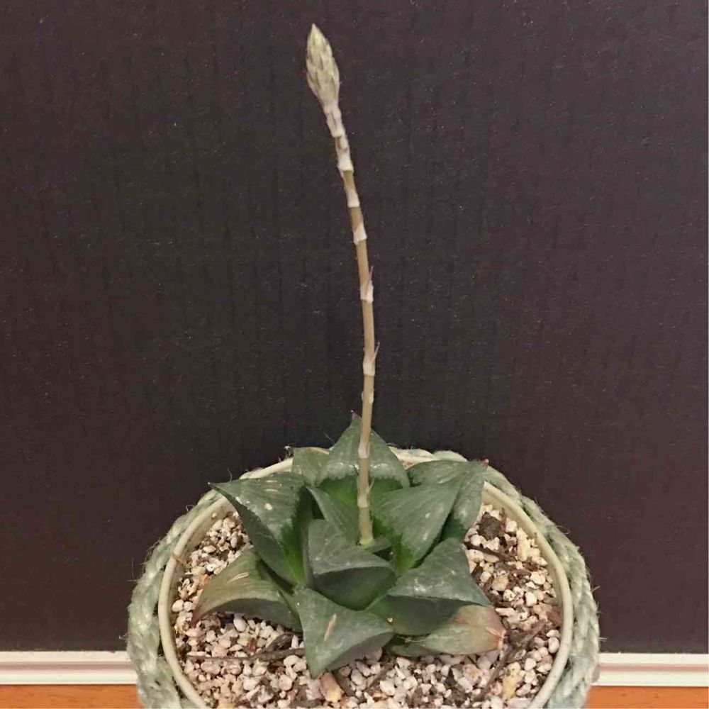 初めての冬。ハオルチア、ムチカなんとかさん、葉っぱの色も良くないし、大丈夫かなぁと思っていたら、真ん中からニョキっと出て来た❗️このままで良いのか⁉️
