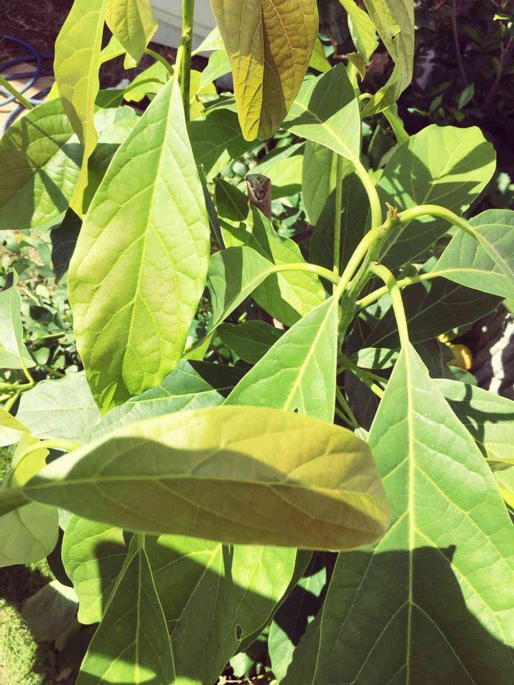 息子が3〜4年前にアボカド🥑の種を植えました。冬の寒さで葉が全て落ち、幹は半分枯れてしまいましたが、下の方から芽がでて、再び茂ってきました❗️