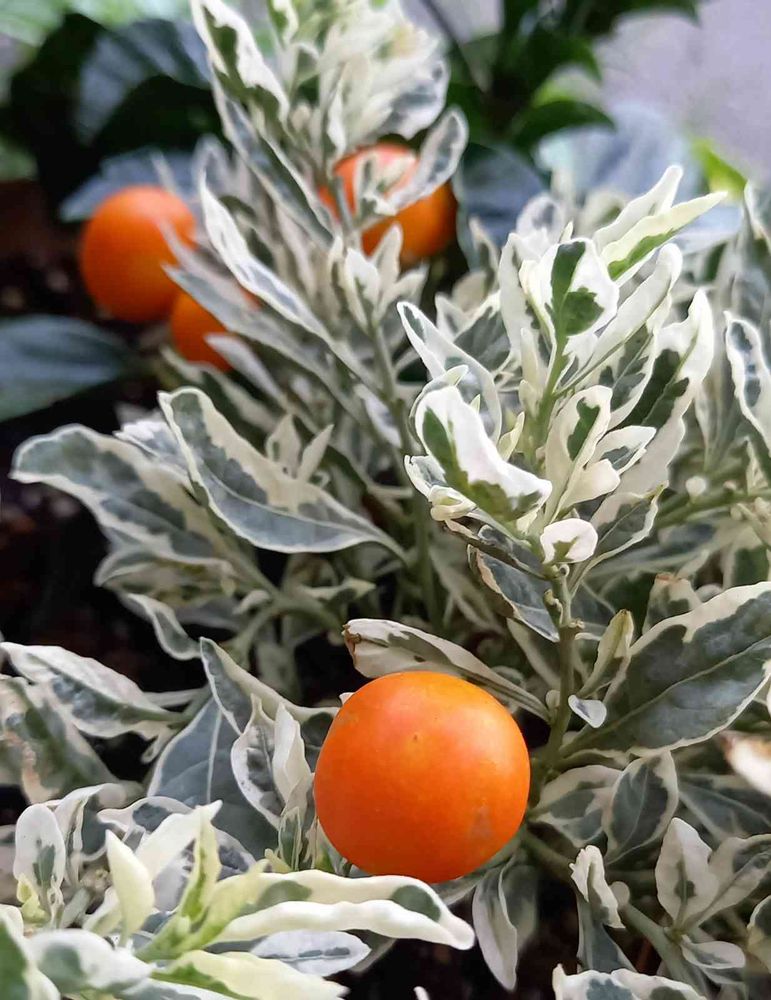 斑入りの葉っぱとオレンジ色の実のバランスが素敵🍊🌿💖✨