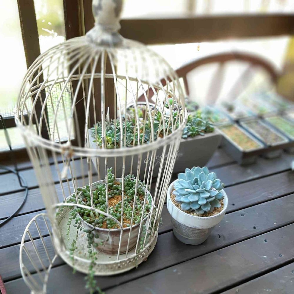 お気に入りのアンティーク風バードゲージにピーチネックレスを入れてみた❣️