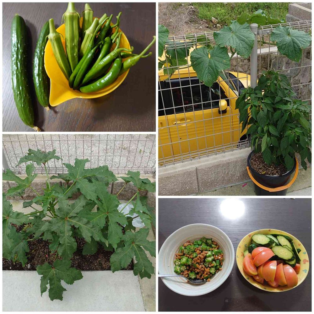 沢山、収穫出来ましたね。オクラは油断してると大きくなりすぎますね。シシトウは玉ねぎ豚肉又は牛肉で炒め、オイスターソースで味付けします。少し砂糖を入れると食べやすくなります。😊💕💟💚