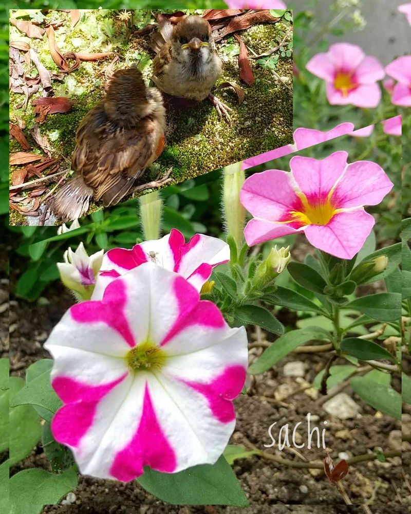 ペチュニア,スズメ,ミリオンベル ピーチキャンディの投稿画像