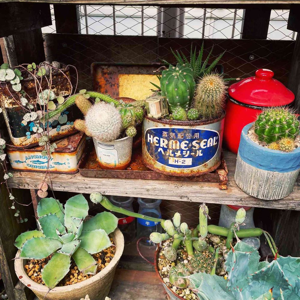 右の寄せ植えの紐サボテンなんてハートカズラのとこまで出張してますよー😂