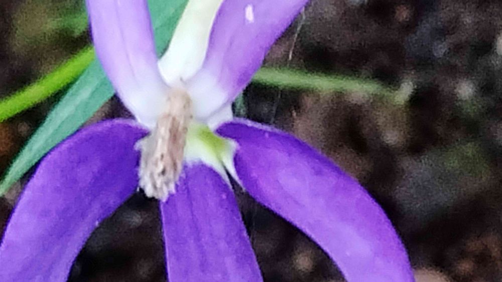 濃い色の花。よく見たら蜘蛛の巣はってない?