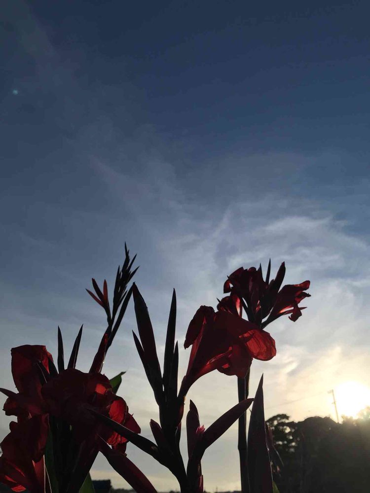 カンナの透けた赤と夕焼けと