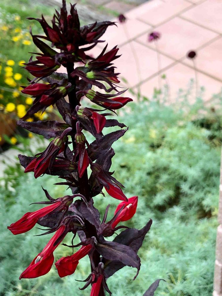 真っ赤な花と、紫褐色の艶のある葉がとっても綺麗💜