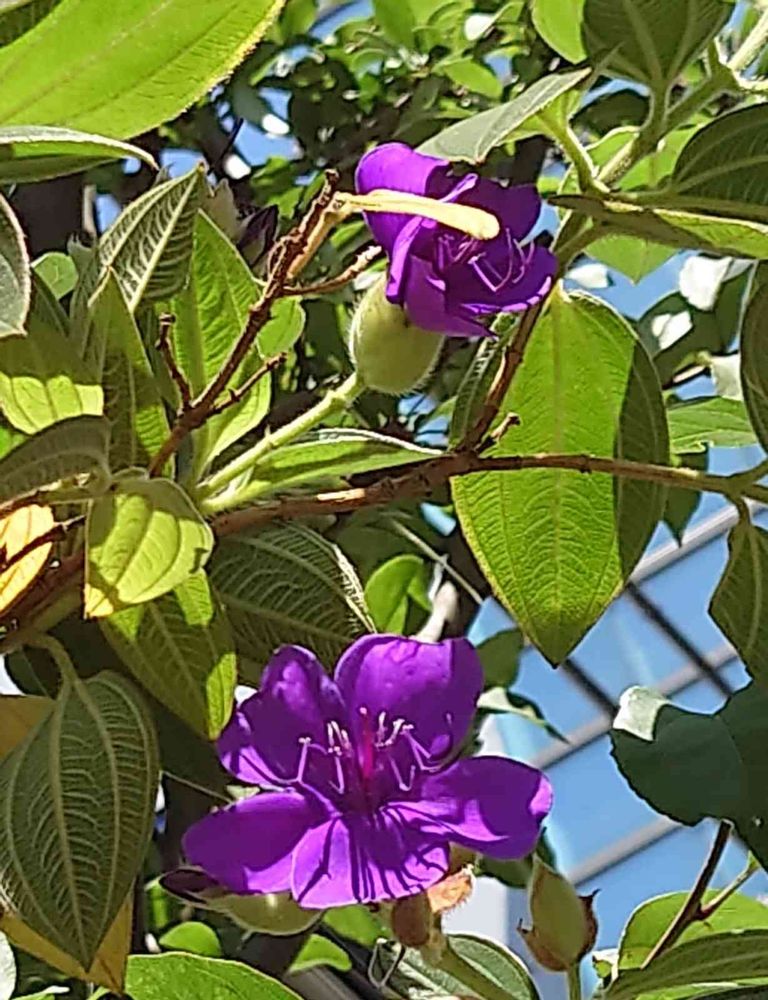高い木の上に紫色のシコンノボタンが咲き始めました、蕊迄紫色で素敵です✨✨