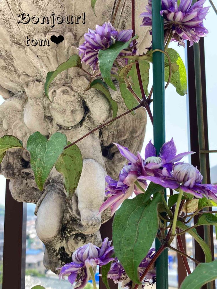素敵なクレマチス💜とエンジェルにズッキュ〜ン💘💘💘💘💘熱中症予防してね〜🥤💕