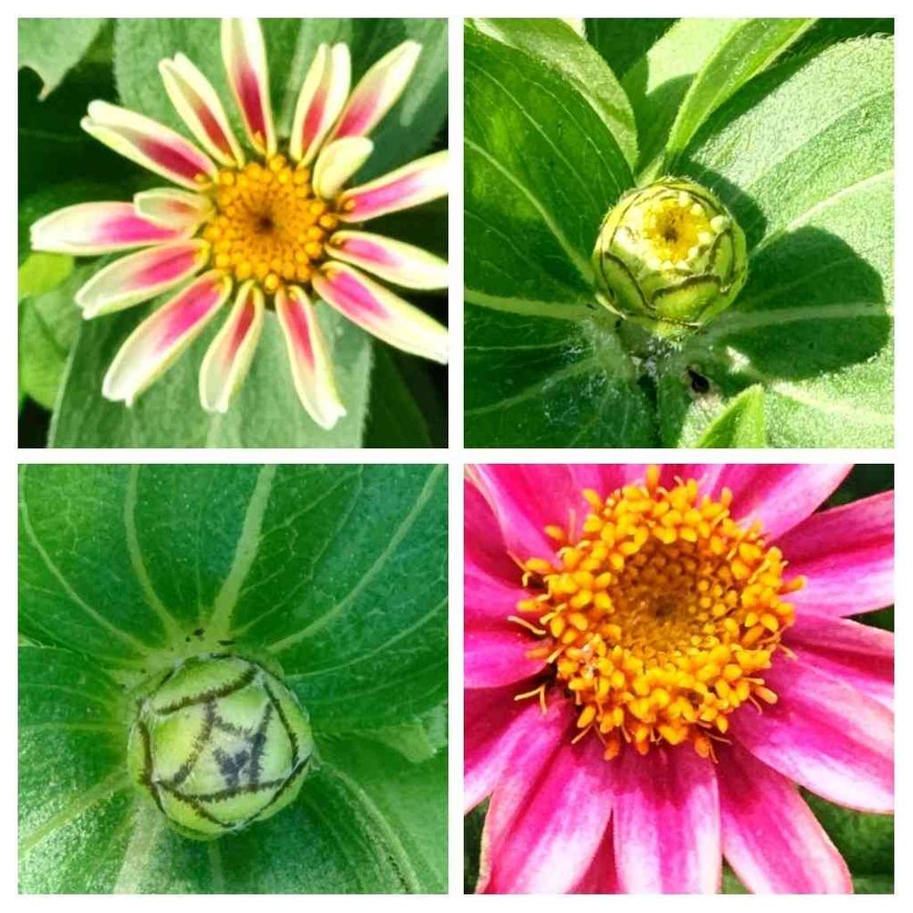 写真はいろんな顔のジニアたち。花も咲き始めと全開とで花色が違ってかわいいし、つぼみもまた、かわいいんだなぁ☺️💕