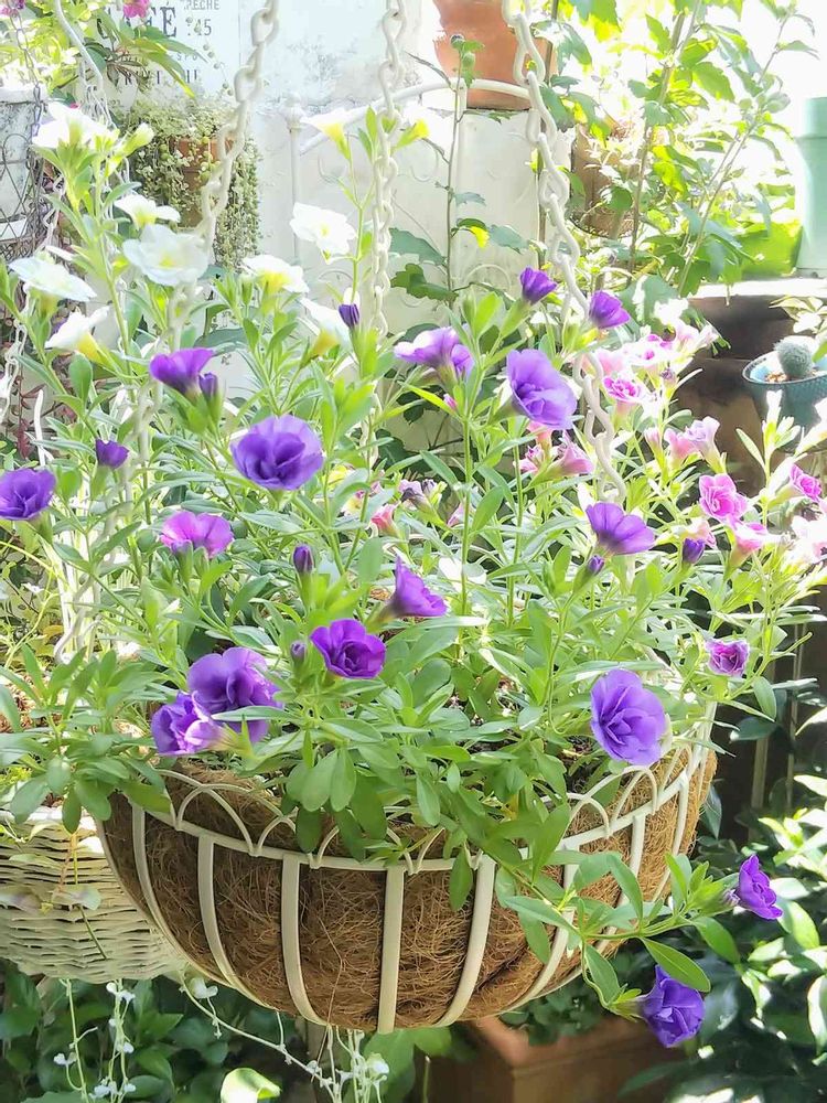 さんしょくのハンギングの寄せ植え💓綺麗なふわふわでいい感じです😆🎵🎵