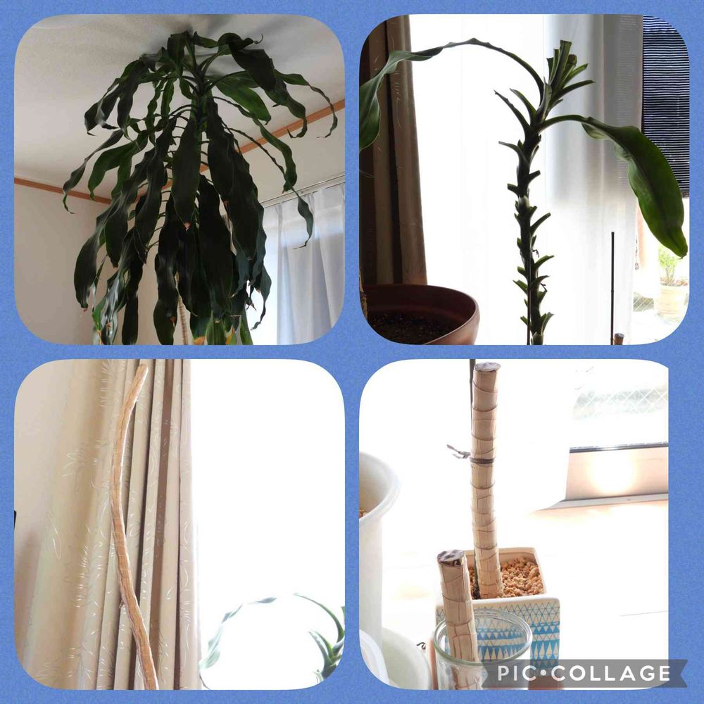 横から新芽が出かかっても途中で止まってしまい、一本がすくすくと伸び、とうとう天井まで届いてしました。
