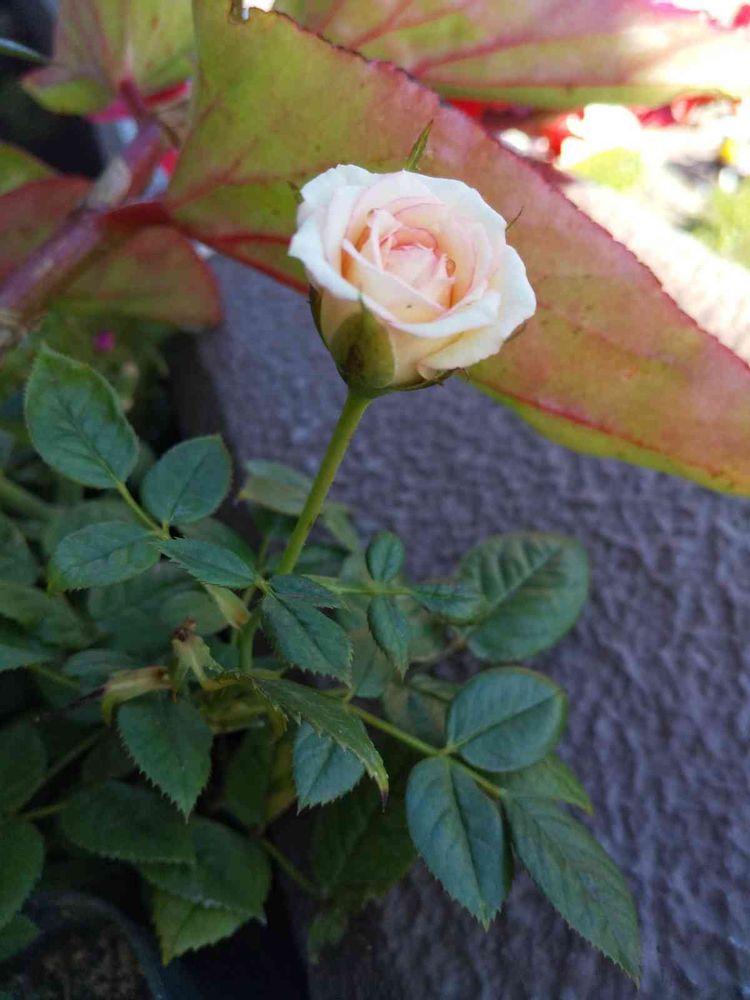 今朝…木立ベゴニアの下に可愛く咲いてました…超ミニバラさん…見〜つけた