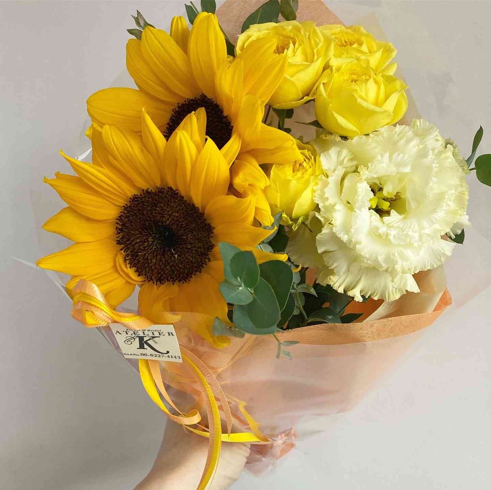 アトリエKさんのトルコキキョウ,ヒマワリ,スプレーバラの投稿画像
