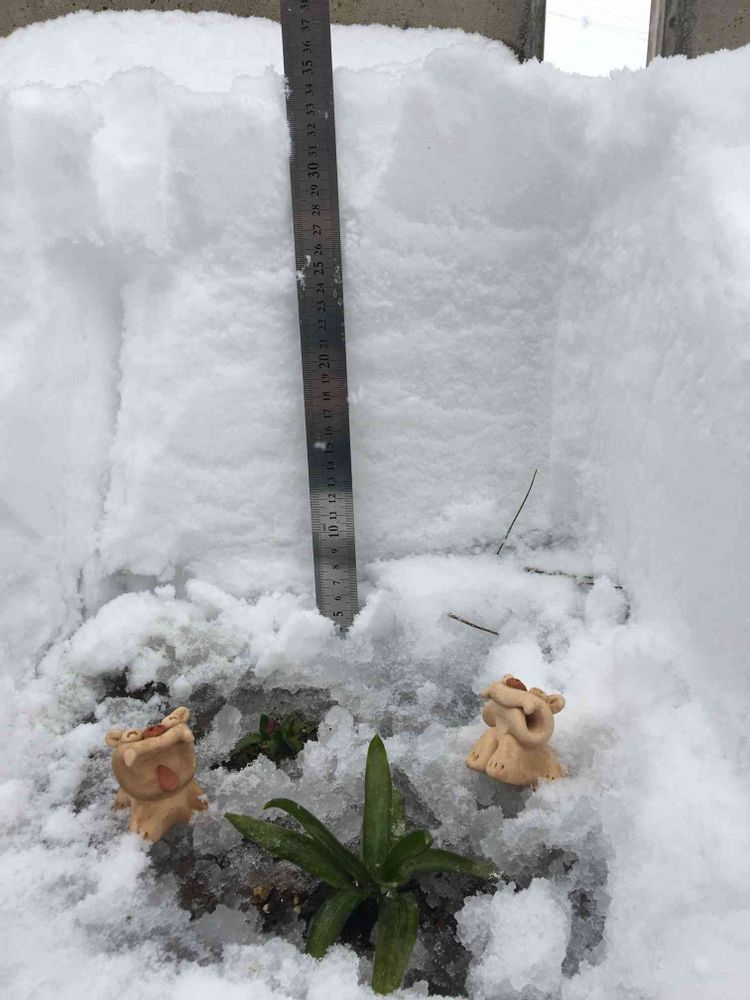 おはようございます❄️❄️昨年は水栽培でしたが直植えしたヒヤシンス寒そうです。🤧🤧🤧 約35cmの雪に☃️耐えて春に花を🌸咲かせて下さいね。🌱🌱🌸🌸(*゚▽゚*)
