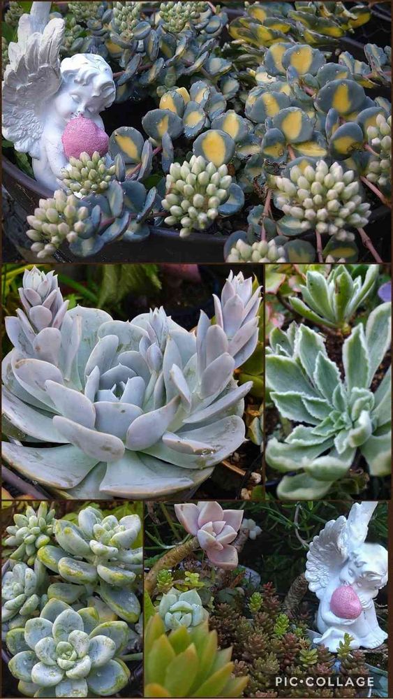↙️謎セダムオーロラブルーはお粉多めなので我が家のワイルドガーデン(注・お手入れ不足の庭のこと)ではウォーターマークっぽいのがバッキバキに