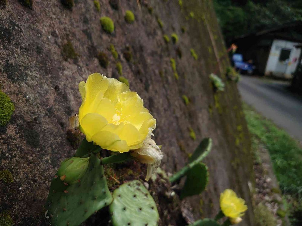 🌵野ざらしのサボテンの💛黄色い花は、少し透け感もあり、かえって涼しげですね。