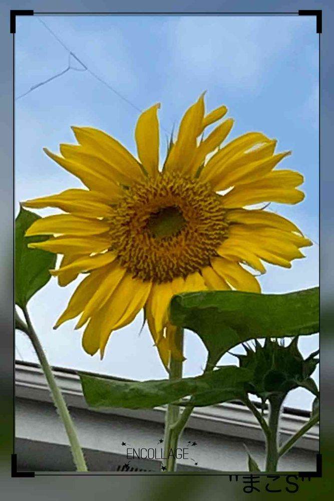今朝の ご近所さんのひまわりは3メートルはありそうな太い幹で、晴天に向かう元気なお花です❗️🌻😍
