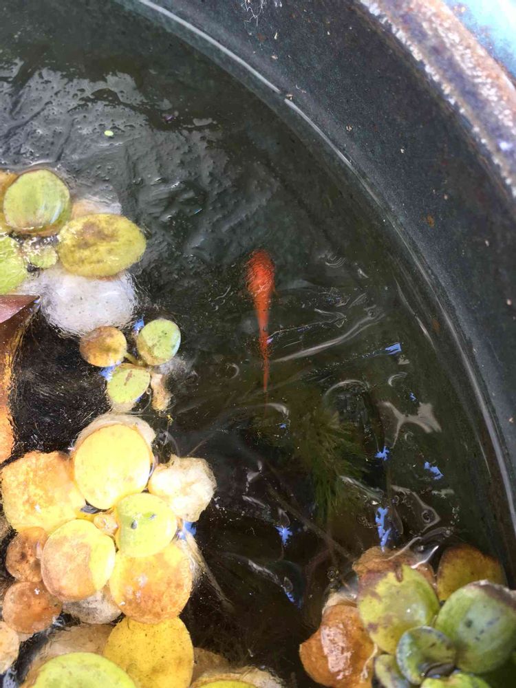睡蓮鉢が2センチくらい凍った…😱