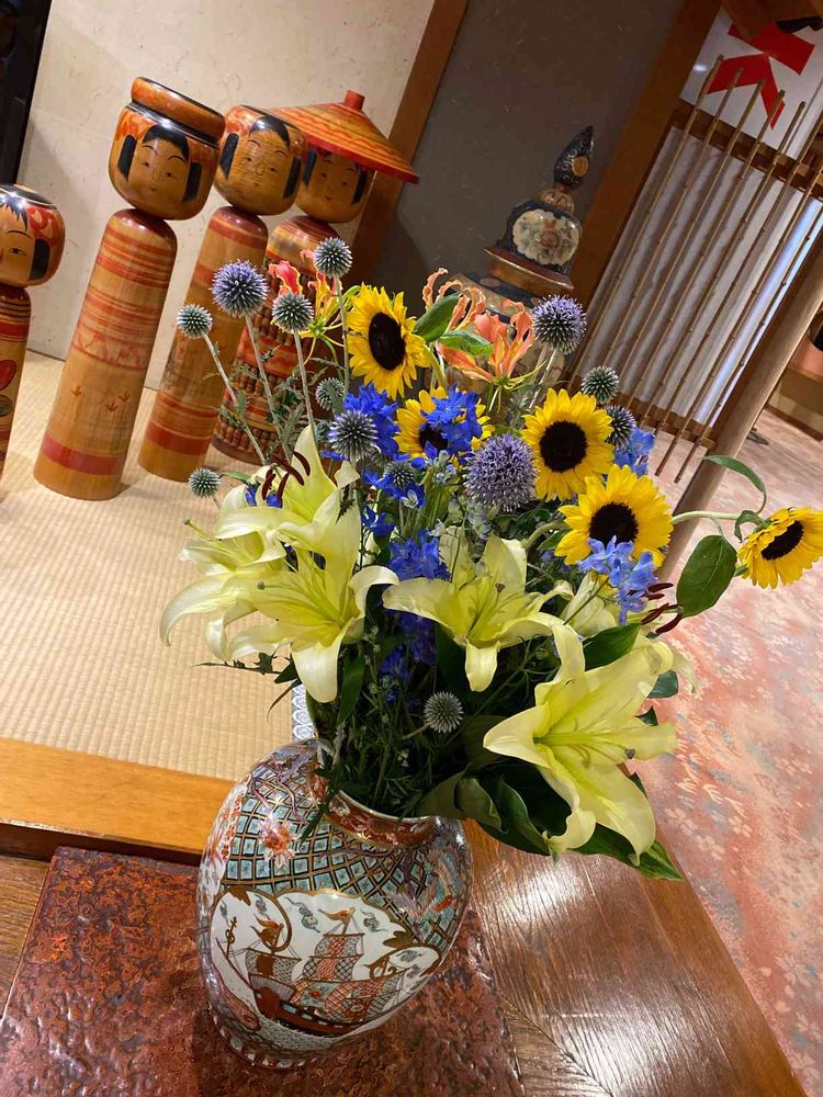 お花きれいに生けてあるわね❤️✨☀️✨花瓶もステキ🎵高そう🎵