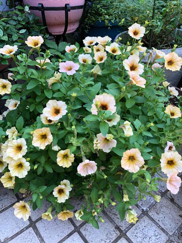 先日切り戻ししたペチュニアステファニーが沢山のお花と蕾を付けています。