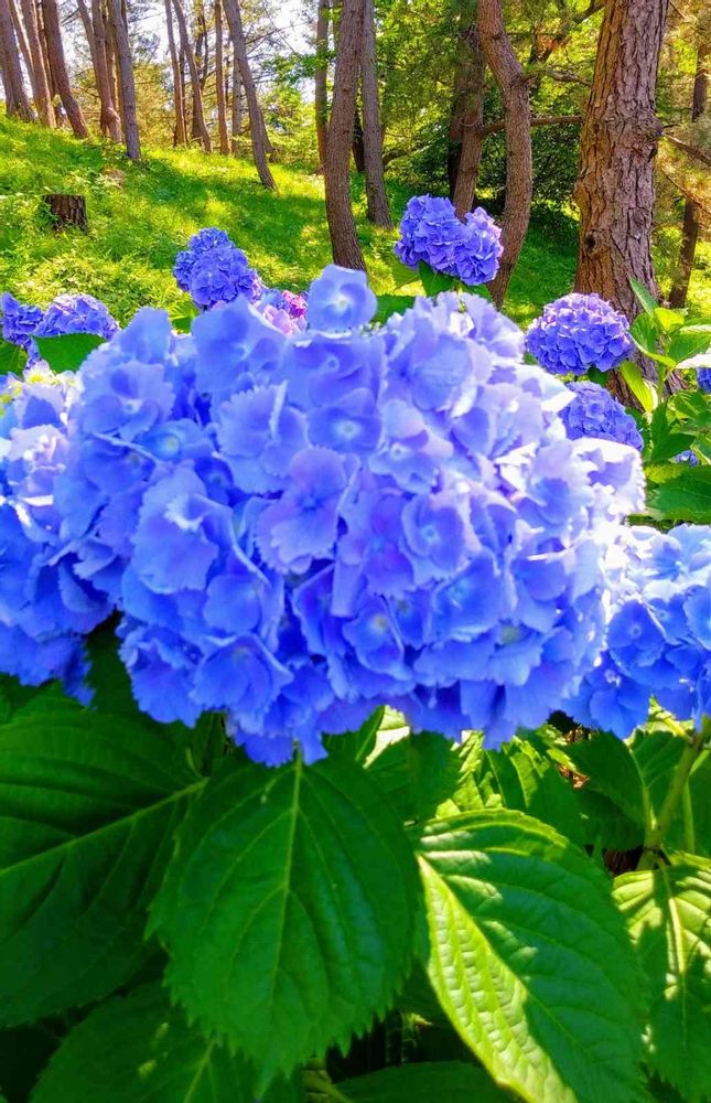 鮮やかな色のアジサイが森の中で輝いていますね✨✨✨
