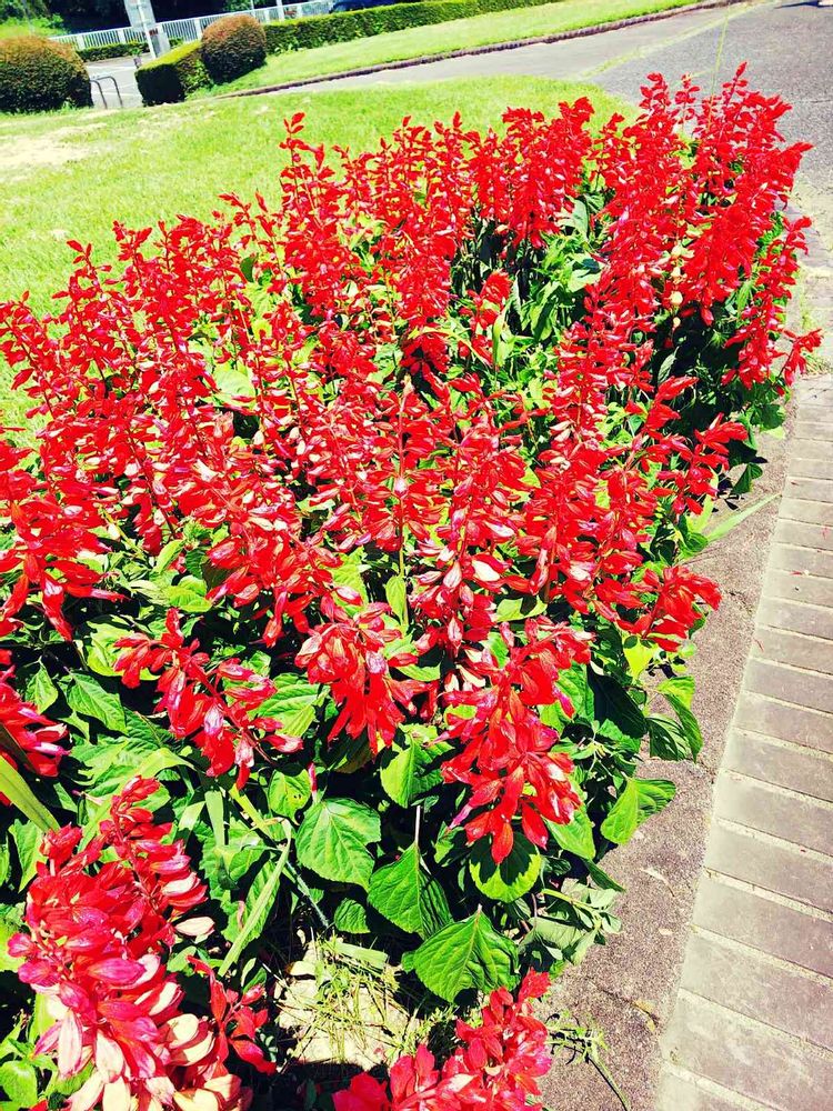 赤いサルビアは、一面咲いているるのを見るのは、夏元気になります🌼🌿