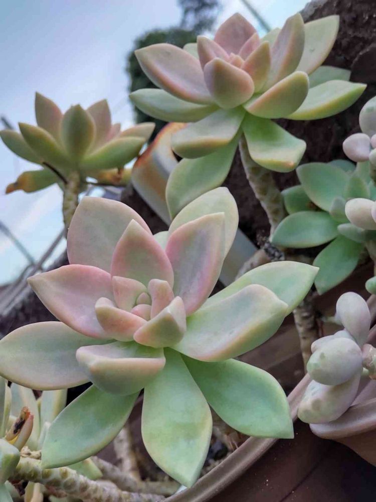 夕暮れ時の グラプトペセダム・桜牡丹さん😻💗🤍💚