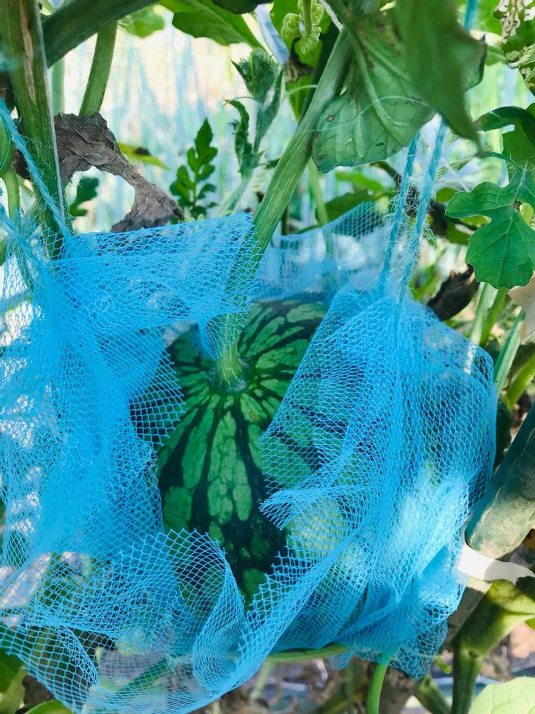 子供の頃スイカゴロゴロの畑🍉行きました 今は空中栽培💓鳥対策なんですね♪