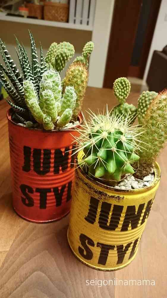 十二の巻を見つけたら作ろうと思ってたサボテン寄せ植え🌵初めてのJUNK STYLEにちょっとドキドキ(*´艸`*)♡