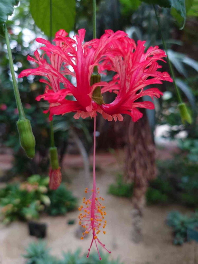 ハイビスカスを逆さにしたようなこのお花、可愛いですね〜