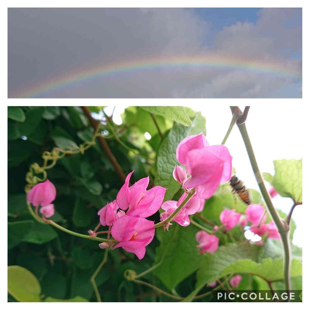 数日前に撮った虹🌈とアサヒカズラ💠と🐝さんの写真をアップします😊
