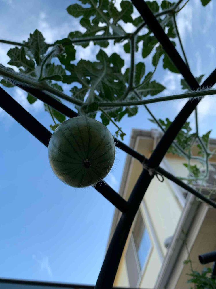小さな庭,小玉スイカ,スイカの空中栽培の投稿画像