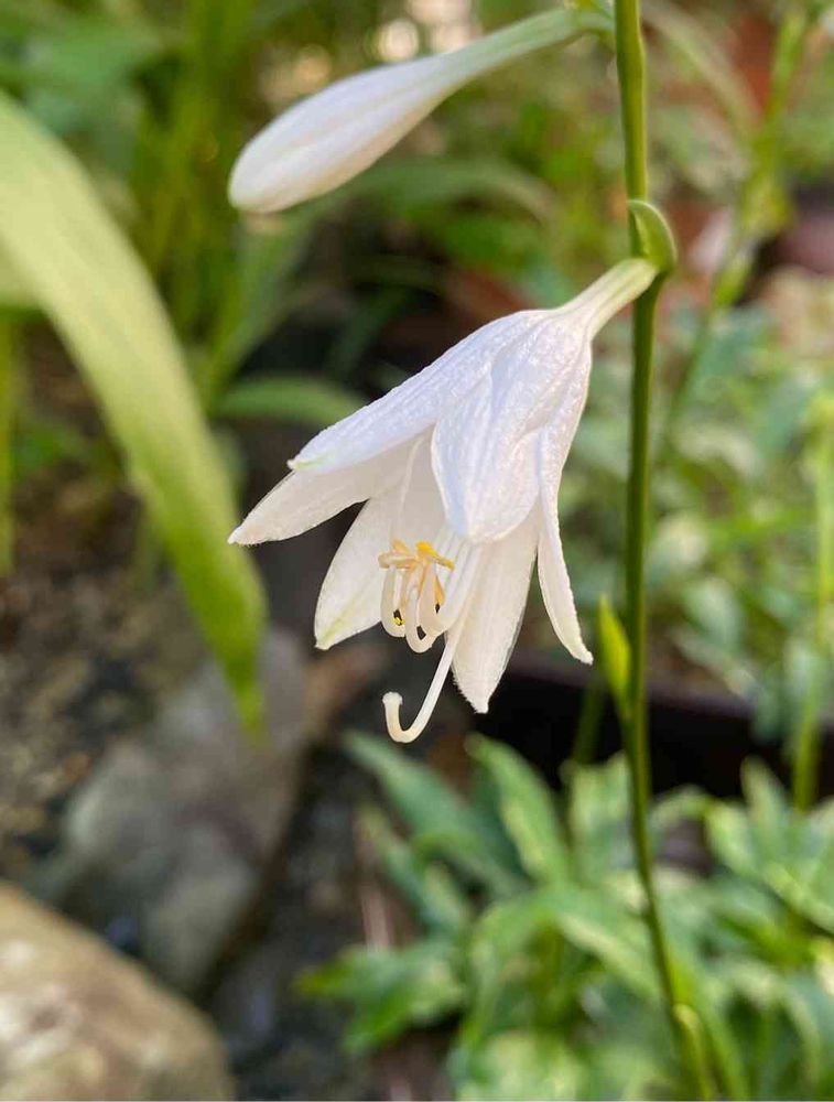 庭で尾瀬白花擬宝珠(オゼシロバナギボウシ)が咲きました😄