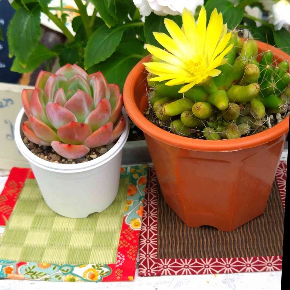 サボテン🌵のお花って、綺麗ですよね〜💖 コースターは畳の部分もだけど、ヘリはいろんな種類があって