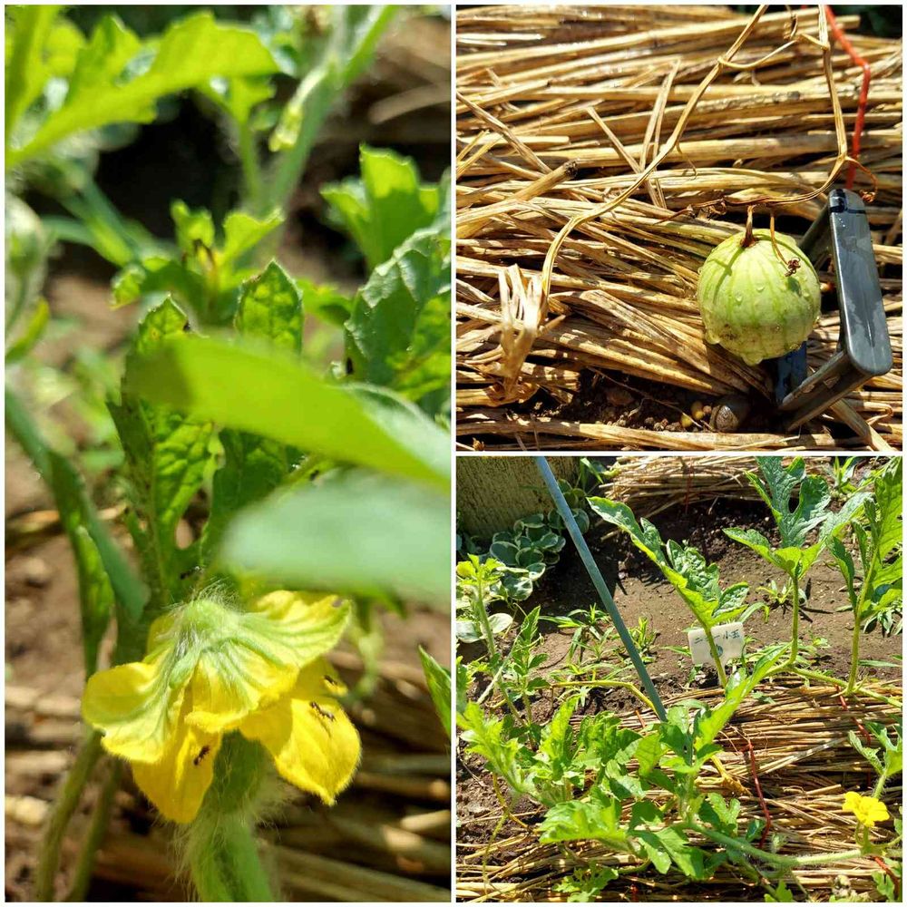 収穫を楽しみに大事に育てていた小玉スイカ🍉~梅雨の長雨☂️と急な猛暑🔥でひとつは茎が枯れ💦もうひとつは虫か何かに食べられて失くなりがっかり😖⤵️