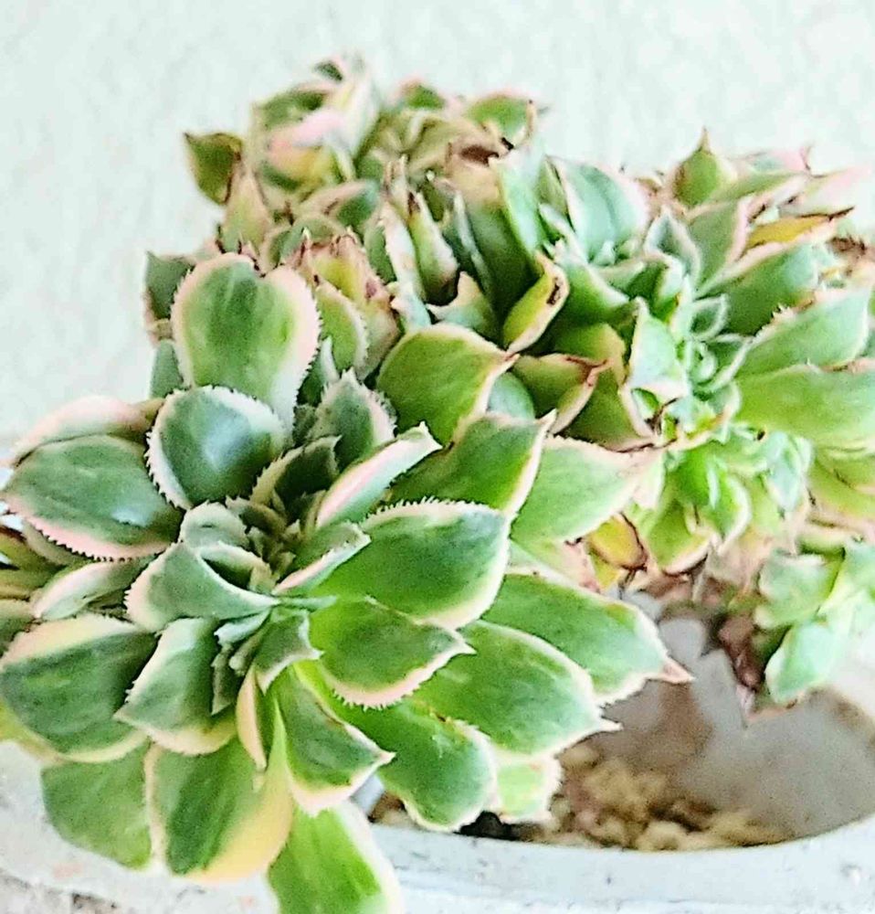 サンバースト綴化お迎えしたんですね😆💗キムチさんのお宅産なんだ😊🎶今の時期アエオニウムさん達は、お休み中だけど、この子元気そう🥰うちのは、平べったい茎?が腐っちゃって、少しだけになっちゃった😭
