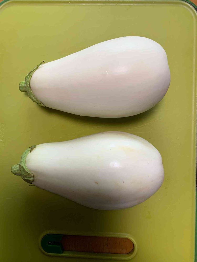 知人か作って販売している白茄子を頂きました。丸のままステーキにして、食べさ時に切ると風味が良くジューシーだそうです☺️
