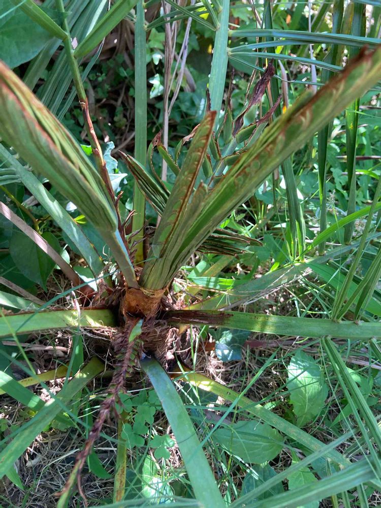 瀕死のチリサケヤシもやっとまともに近い葉の槍が出てきました(*´∇`*)
