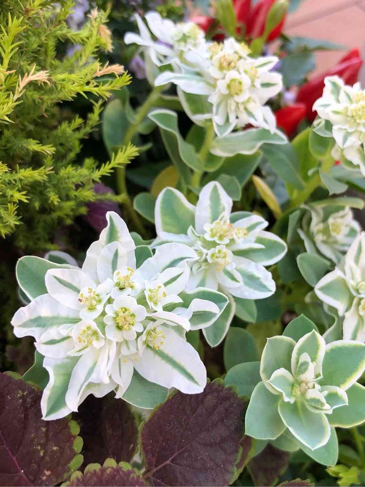 ハツユキソウ、素敵ですネ❣爽やかで見るからに涼しそう❣淡いグリーンと白、薄い黄色が良いです❣赤いハゲイトウも素敵でしたよ❣ハゲイトウの下の白い花とバッチリでした。❇️💠❇️