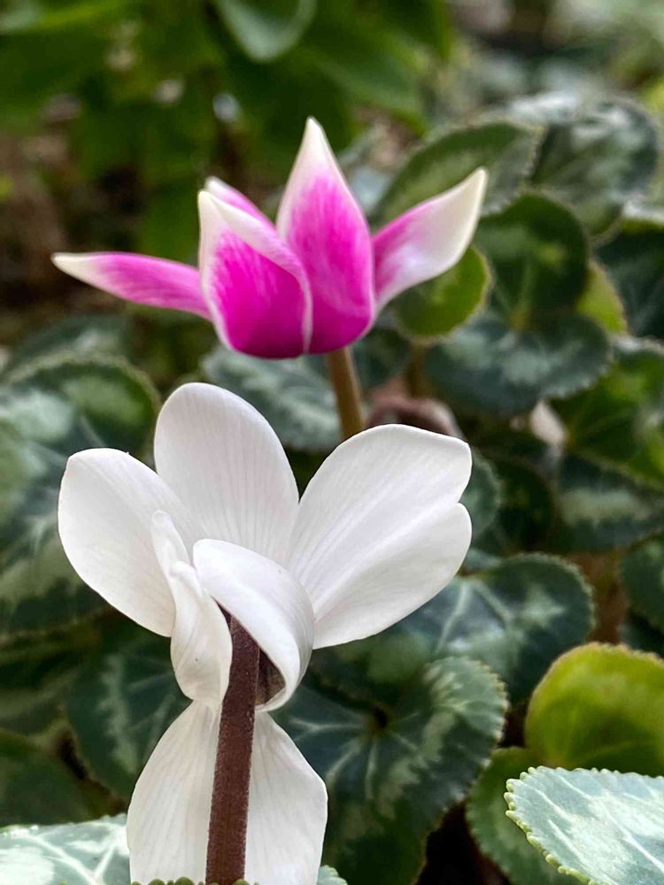 抱きしめてる感じの白シクラメンちゃんが可愛いですね❤️