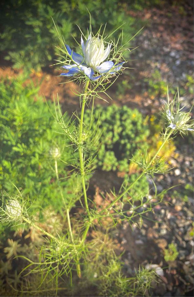 群衆から全く離れたところにポツンと出てきていました。液肥も水やりも届かない場所だったせいもありとてもとても小さくそれでも白い小さな蕾が上がって来ましたよ。寒くなってからも咲きましたし、また、咲けなかった子も小さな苗のまま冬を越しましたし、ニゲラってかなり凄いやつだと思いました…☄(≧∇≦)b✧