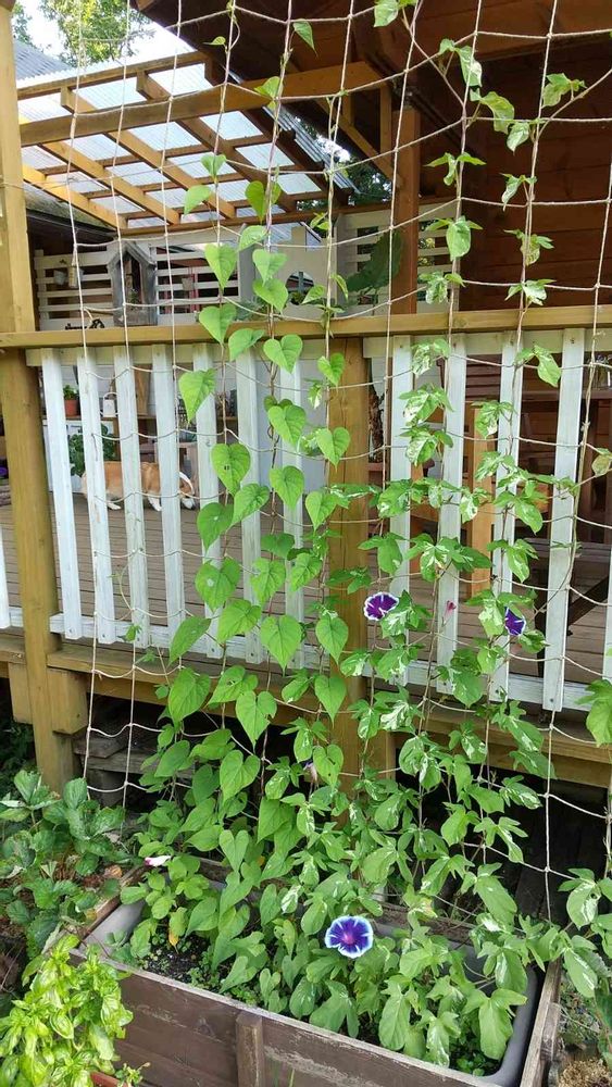 グリーンカーテンの朝顔、だいぶ上の方まで登って来てます🌼😄💞