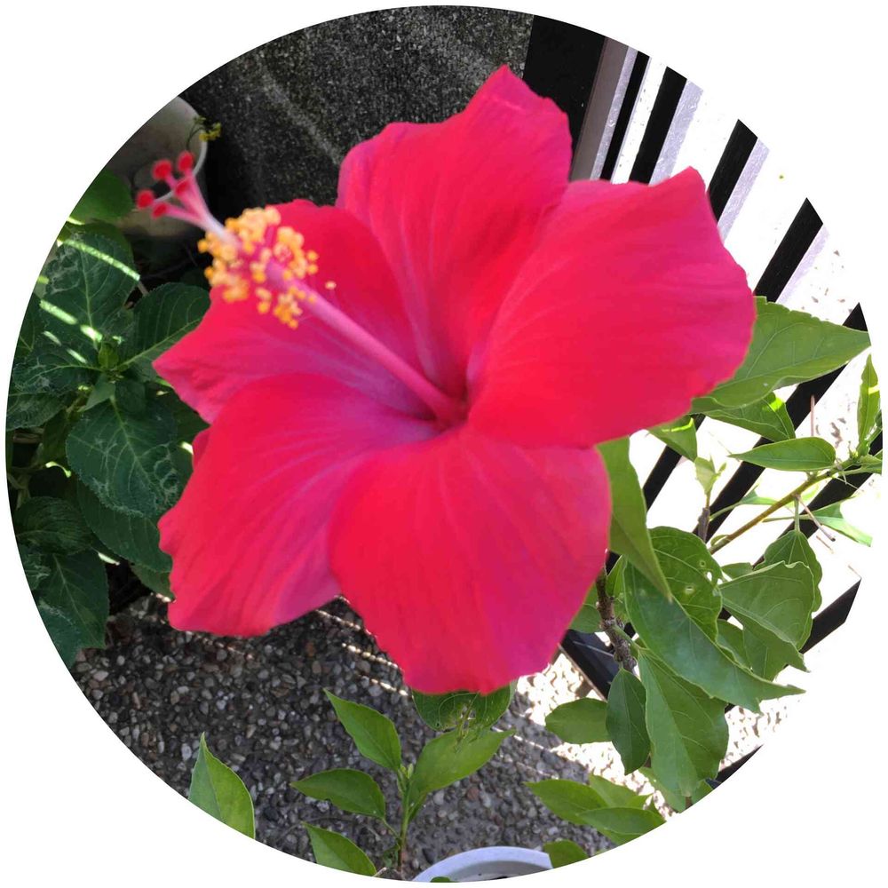 夏の朝にピッタリな赤いハイビスカスさんです🌺