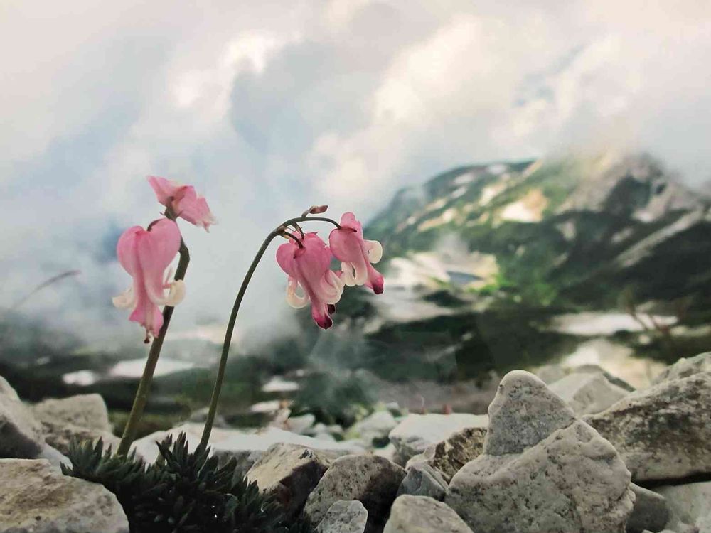 白馬岳直下のがれ場に咲いていたコマクサ、夏の北アルプス縦走の