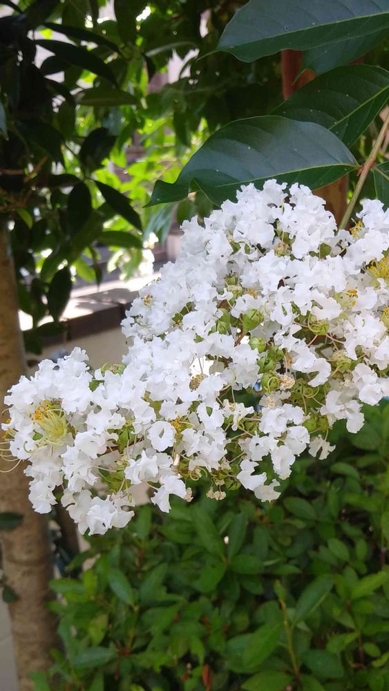 私の家の夏のシンボルツリーが今年も咲き出しました。まだ下の方だけですが、青空に向かって大きく枝を広げています。.•*¨*•.♬