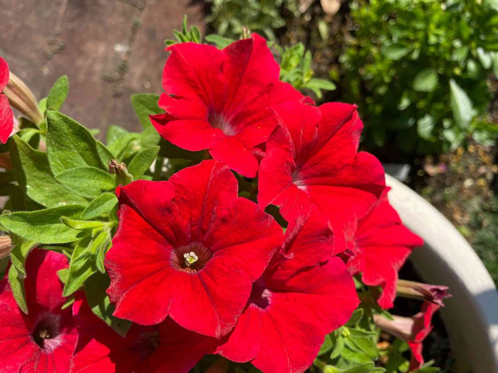 サフィニア シャインレッド。夏の無遠慮な陽射しに隅から隅まで覗き込まれて、それでも毅然として輝く強さ。